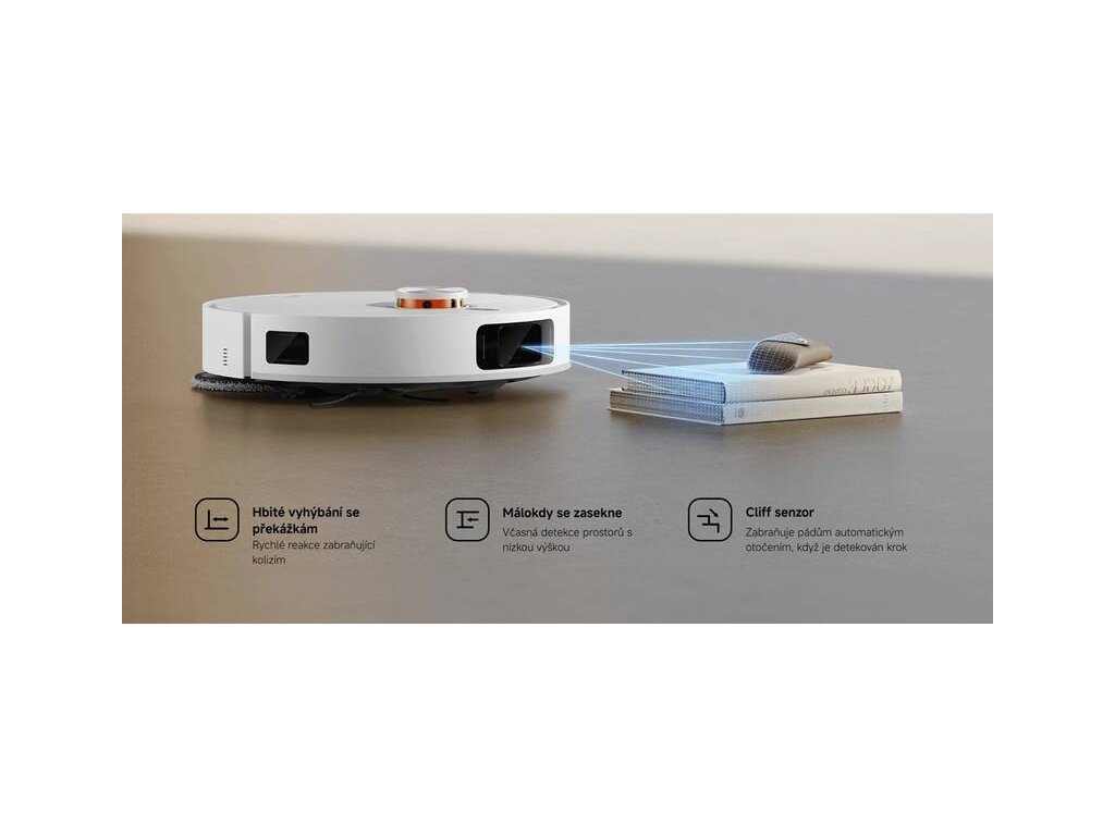 Xiaomi Robot Vacuum X20 Pro rozpozná koberce i rohože Určitě nechcete, aby vám v průběhu mopování robotický pomocník vjel na koberec. Xiaomi Robot Vacuum X20 Pro umí koberce rozpoznat, a po najetí na ně automaticky zvedne mopovací nástavec, aby nedošlo k namokření. S pokročilými senzory robotický vysavač Xiaomi detekuje schody nebo nějakou jinou propast před sebou, nebude dále v daném směru pokračovat, aby se zabránilo jeho pádu.